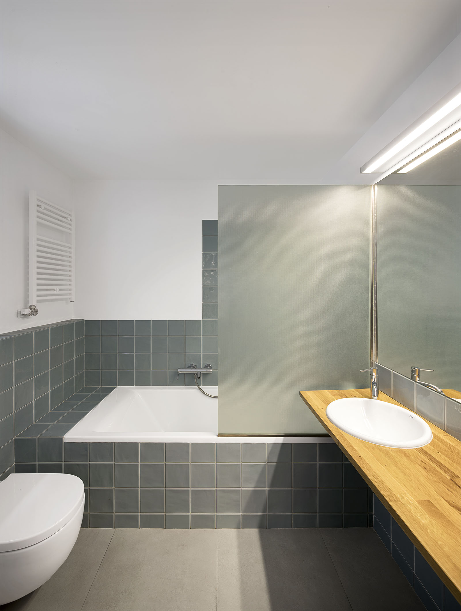 L’actuació va posar especial èmfasi en preservar i restaurar els paviments hidràulics originals, que aporten caràcter i color a les noves estances, i en incorporar materials nous i naturals que milloren la qualitat ambiental, d’acord amb una construcció saludable i sostenible. La nova distribució prioritza l’obertura d’espais per maximitzar l’entrada de llum natural, transformant un pis fosc en un habitatge lluminós i acollidor.